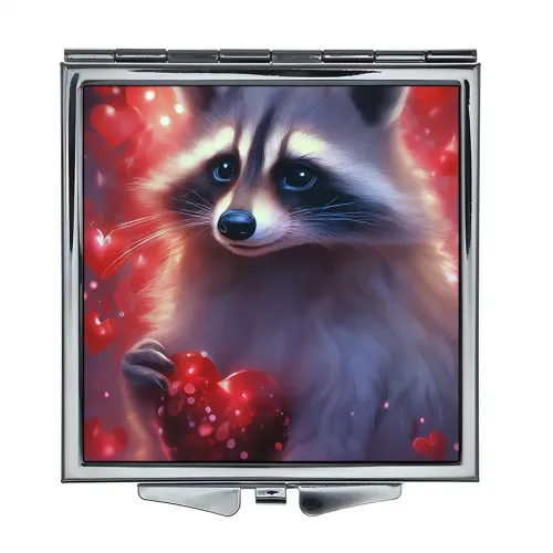 Складное зеркало квадратное Енот любовь ZER2-1209