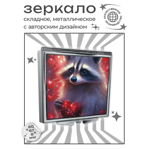 Складное зеркало квадратной формы с полноцветным изображением енота.