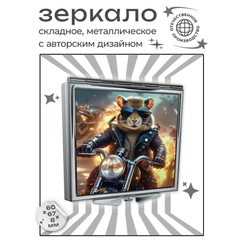 Складное зеркало квадратное Байкер грызун ZER2-1215
