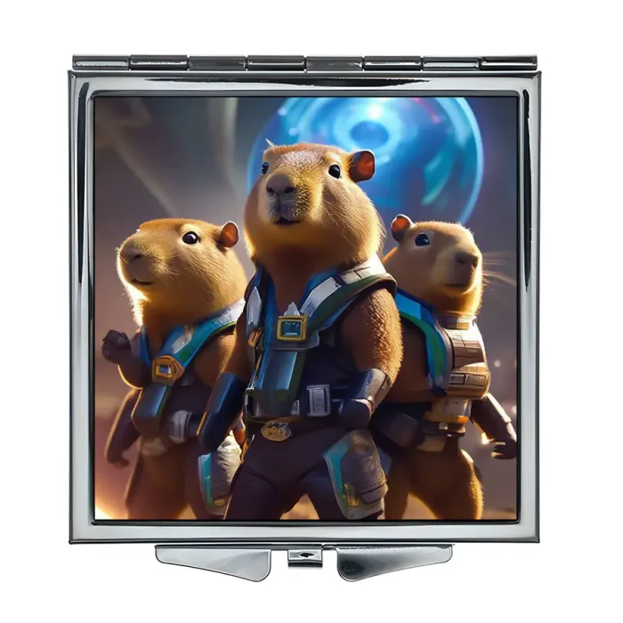 Складное квадратное зеркало с изображением капибары в стиле сай-фай.