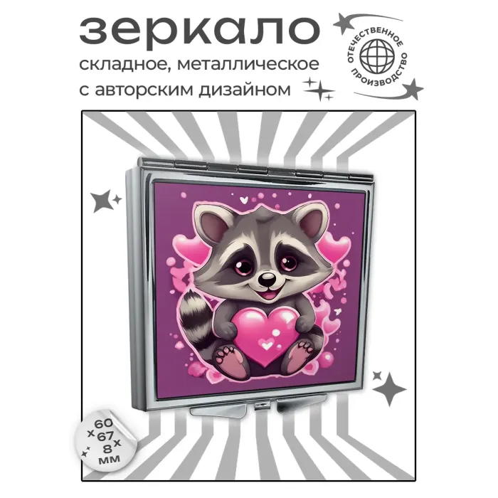 Складное зеркало квадратное Енот любовь ZER2-1232