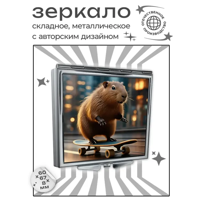 Складное зеркало квадратное Капибара скейтборд ZER2-1236