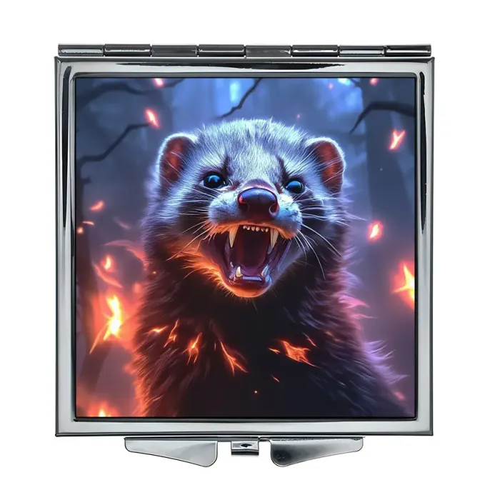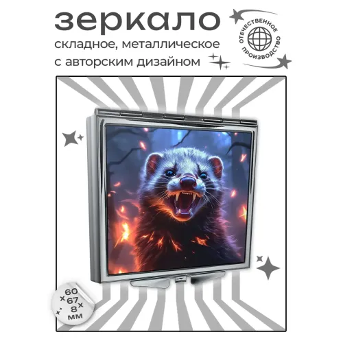 Складное зеркало квадратной формы для личного использования, изготовленное из металла и стекла с полноцветной печатью.