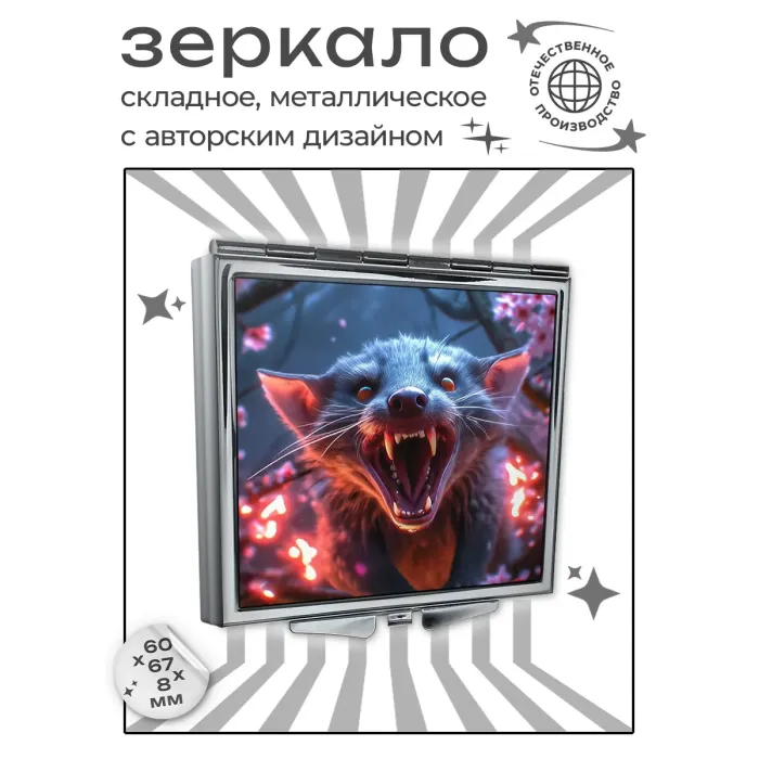 Складное зеркало квадратное Хищный зверь ZER2-1247