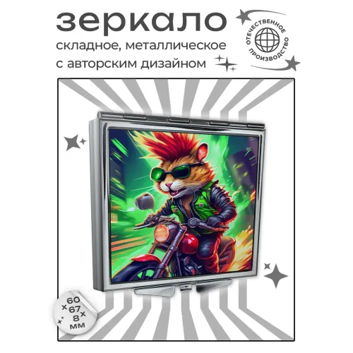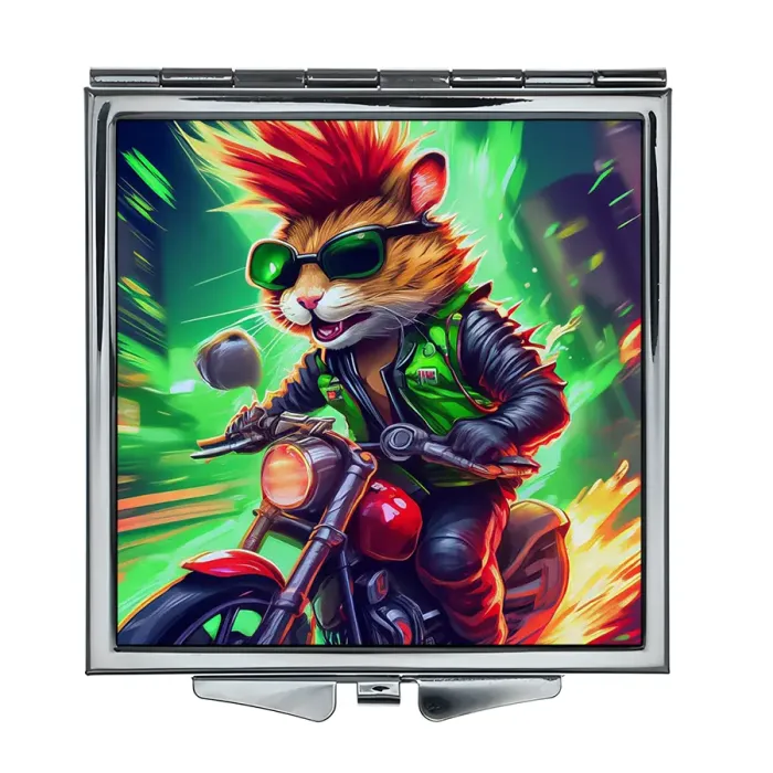 Складное квадратное зеркало с полноцветным изображением на металле.