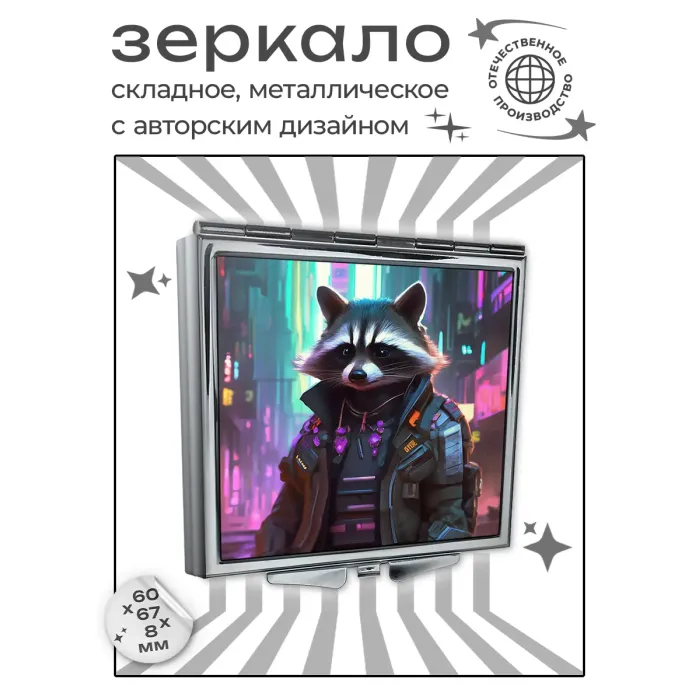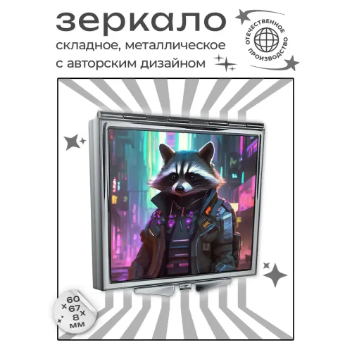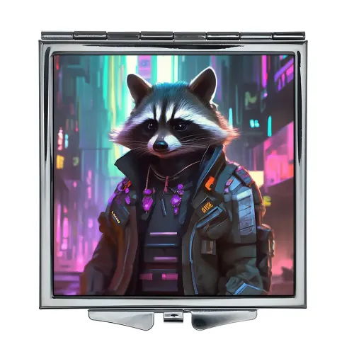 Складное зеркало квадратное Енот киберпанк ZER2-1254