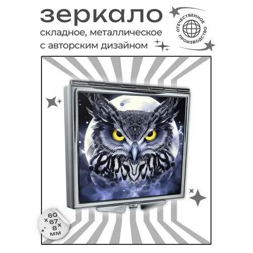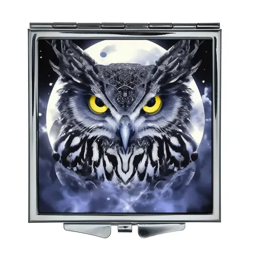 Складное зеркало квадратной формы с изображением совы в полнолуние.