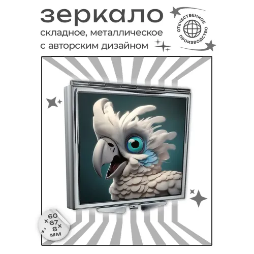 Складное зеркало квадратной формы с полноцветным изображением попугая.