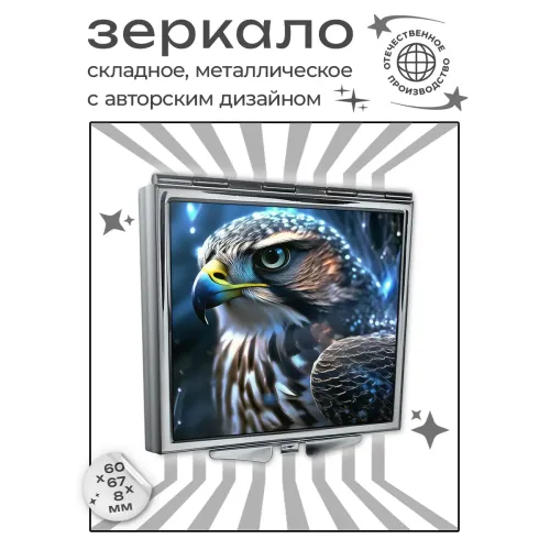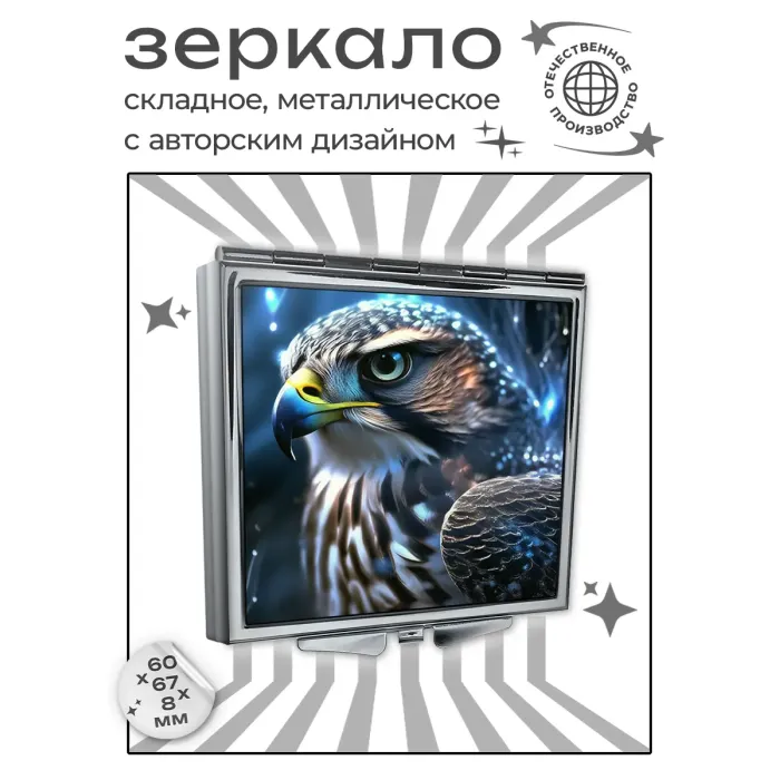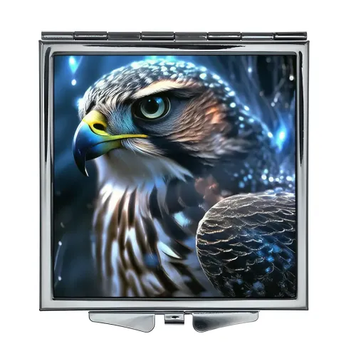 Складное зеркало квадратного формата из металла и стекла с полноцветной печатью изображения ястреба.