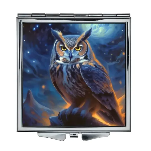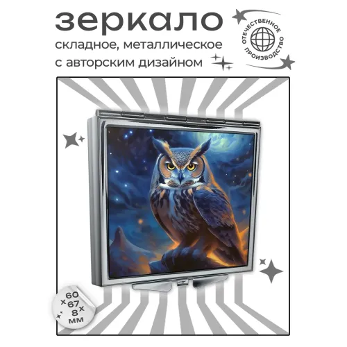 Складное квадратное зеркало с изображением совы на фоне ночного неба.