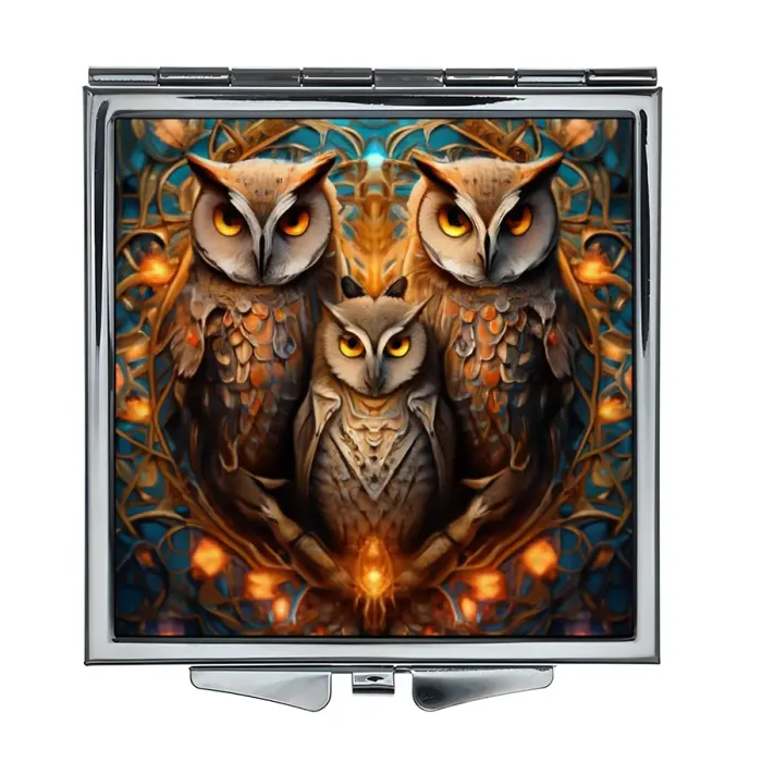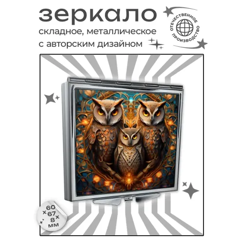 Складное зеркало квадратной формы с полноцветным изображением на металлической основе.