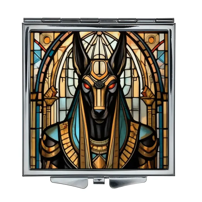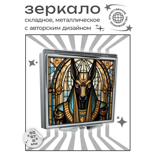 Складное зеркало квадратной формы с изображением бога Анубиса станет стильным аксессуаром и оригинальным подарком. Это изделие выполнено из качественных материалов: металл и стекло, что обеспечивает долговечность и надежность. Размер зеркала составляет 60х67х8 мм, что делает его удобным для использования в дороге или в сумке. Полноцветная печать на металле отличается высоким качеством, придавая изделию яркий и привлекательный вид. Зеркало не только практично, но и несет в себе культурный символизм, связанный с древнеегипетской мифологией.