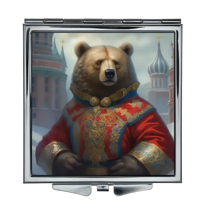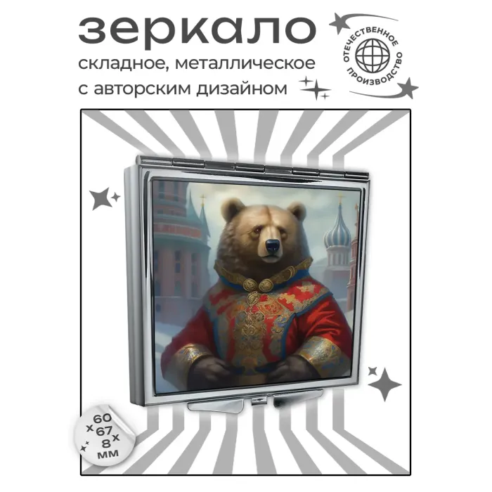 Складное зеркало квадратной формы с изображением Русского медведя — это не просто аксессуар, а символ русской культуры и традиций. Оно идеально подходит для использования в путешествиях или повседневной жизни.