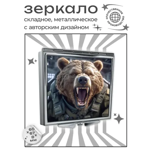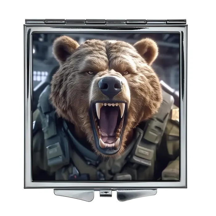 Складное зеркало квадратной формы с изображением медведя в стиле милитари.