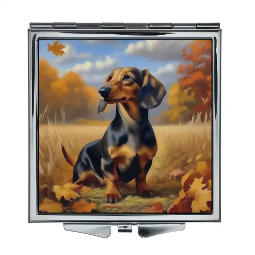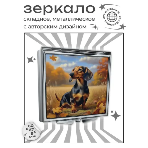Складное квадратное зеркало с полноцветным изображением таксы.
