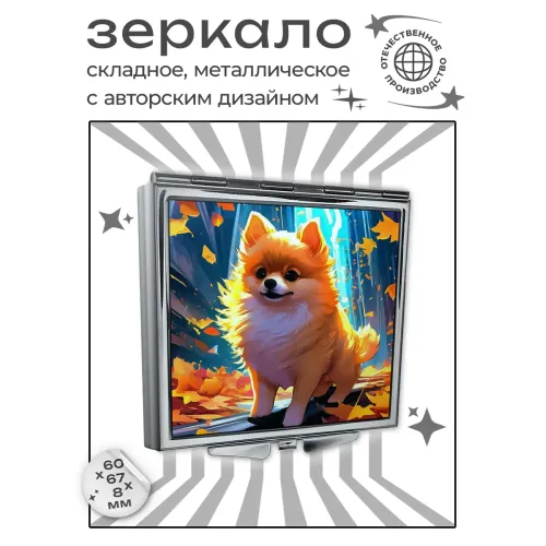 Складное зеркало квадратное Шпиц осень ZER2-1347