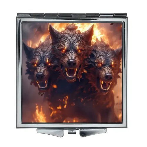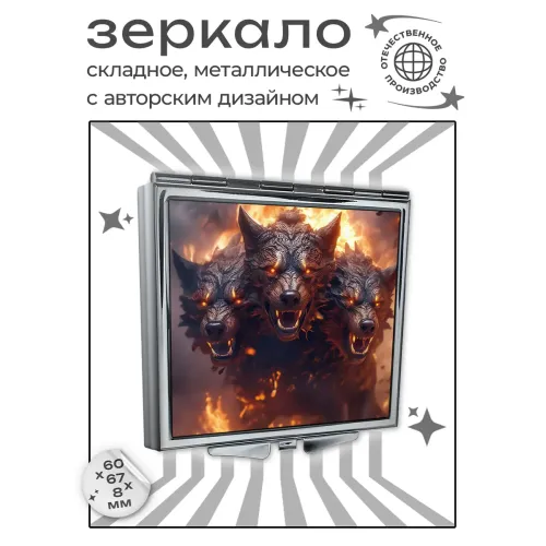 Складное зеркало квадратной формы с полноцветным изображением на металле.