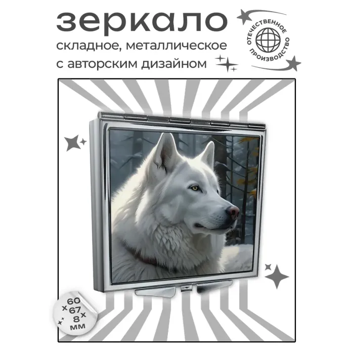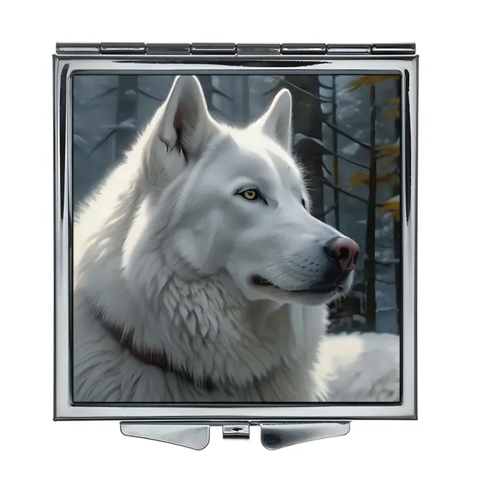 Складное зеркало квадратное Белая собака ZER2-1361