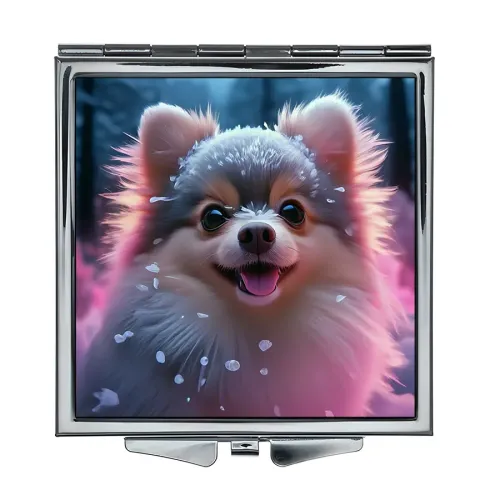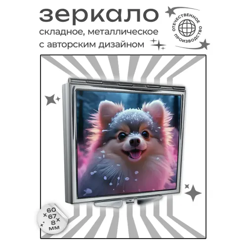 Складное зеркало квадратной формы с полноцветным изображением. Изделие выполнено из металла и стекла.