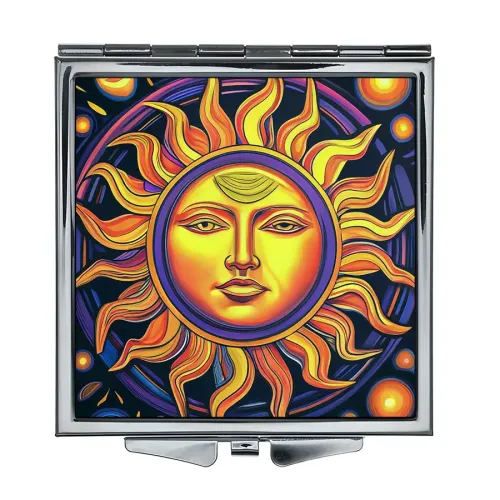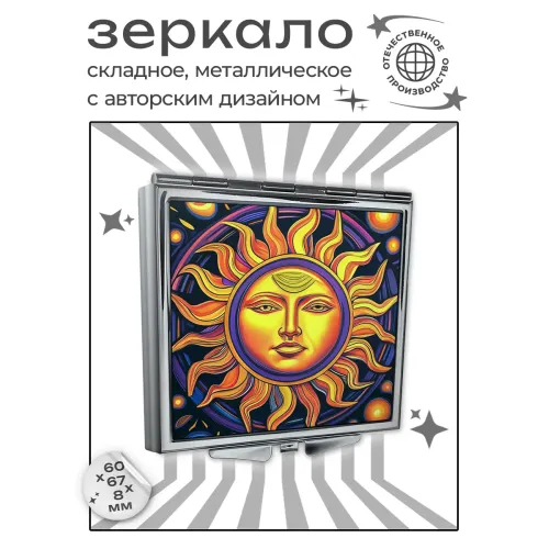 Складное зеркало квадратной формы с изображением Солнца.