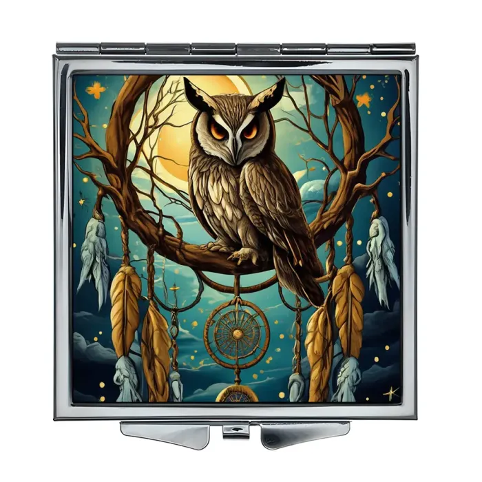 Складное зеркало квадратное Сова ловец снов ZER2-1417