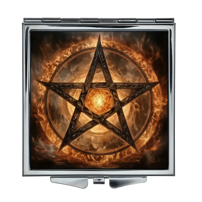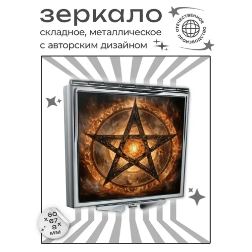 Складное зеркало квадратной формы с изображением пентаграммы.