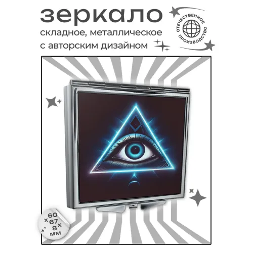 Складное квадратное зеркало с изображением Всевидящего ока. Изготовлено из металла и стекла.