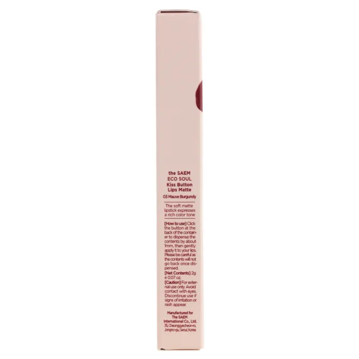 Помада для губ матовая Eco Soul Kiss Button Lips Matte 03 Mauve Burgundy The Saem 2 гр