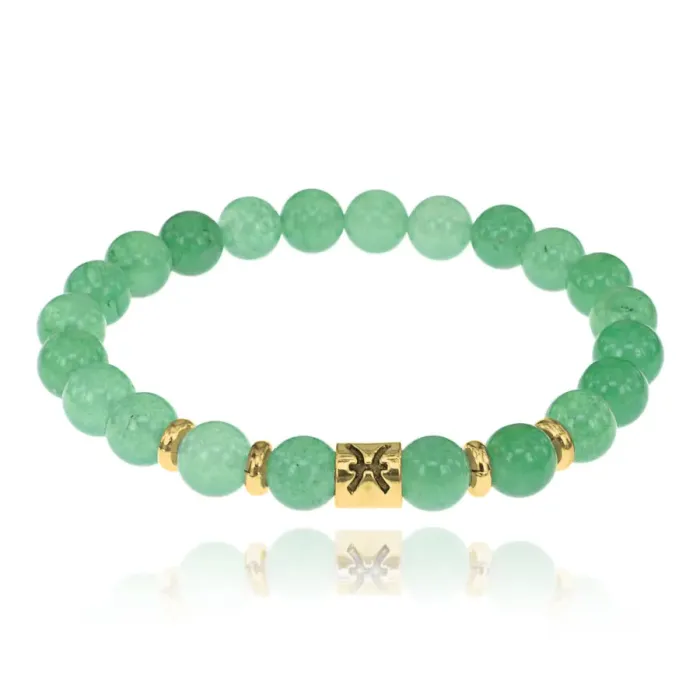 Стрейч-браслет с символом знака зодиака Рыбы из натурального нефрита.