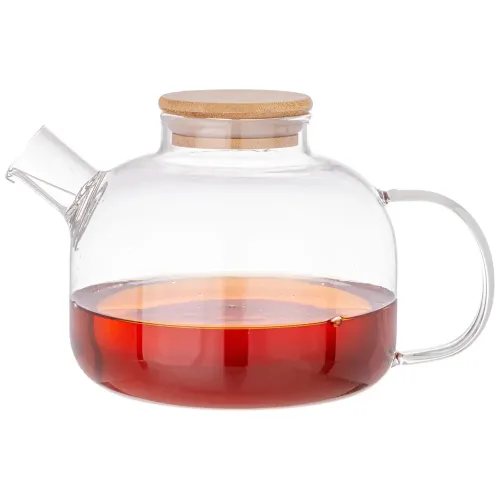 Для сохранения внешнего вида бамбуковую крышку следует мыть вручную. Прозрачный дизайн чайника позволяет ему сочетаться с посудой разных стилей. Изделие можно использовать как самостоятельный предмет сервировки или в комплекте с другими аксессуарами для чая.
