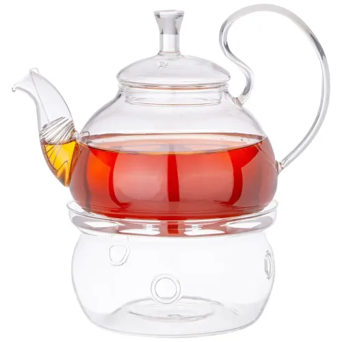 Стеклянный заварочный чайник с фильтром из нержавеющей стали предназначен для приготовления и подачи чая. Комплект включает стеклянную подставку для подогрева, которая помогает поддерживать температуру напитка.