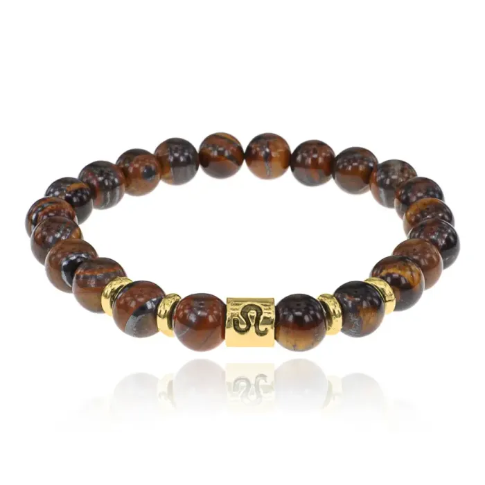 Браслет Знаки Зодиака - Лев с натуральным Тигровым глазом 8мм BSZE02-17