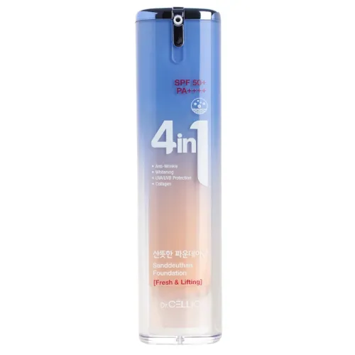 Тональный крем Dr.G50 4 IN 1 FOUNDATION от бренда Dr. Cellio — это универсальное средство для создания безупречного тона кожи. Разработанный в Республике Корея, этот крем содержит гидролизованный коллаген, который помогает ему подстраиваться под естественный тон вашей кожи, эффективно маскируя пятна и дефекты. Крем также обеспечивает высокую степень защиты от солнечных лучей благодаря SPF 50+ PA+++, что помогает сохранить чистый и ровный тон кожи.