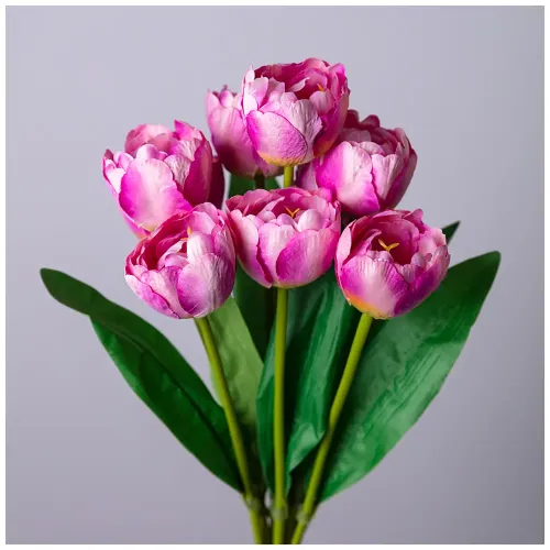 Букет выполнен из качественного полиэстера и металла, что обеспечивает долговечность и реалистичный вид. Искусственные тюльпаны можно разместить в любом уголке дома или офиса без опасений за освещение. Они не создают мусор, не болеют и безопасны для аллергиков.
