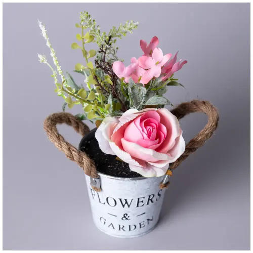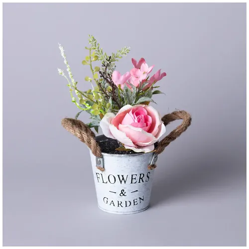 Цветочная композиция в ведерке 25 см от Lefard — это искусственное украшение, предназначенное для декорирования интерьера. Композиция выполнена из полиэстера и металла, что обеспечивает её долговечность и устойчивость к внешним воздействиям.
