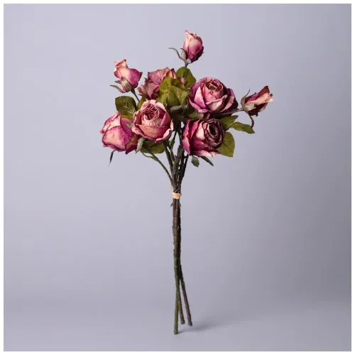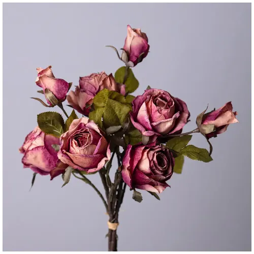 Цветы изготовлены из полиэстера с металлическими элементами в конструкции стеблей. Это обеспечивает долговечность и устойчивость к внешним воздействиям. Такой букет подходит для любого стиля интерьера и может быть размещён даже в местах с недостаточным освещением или повышенной влажностью.
