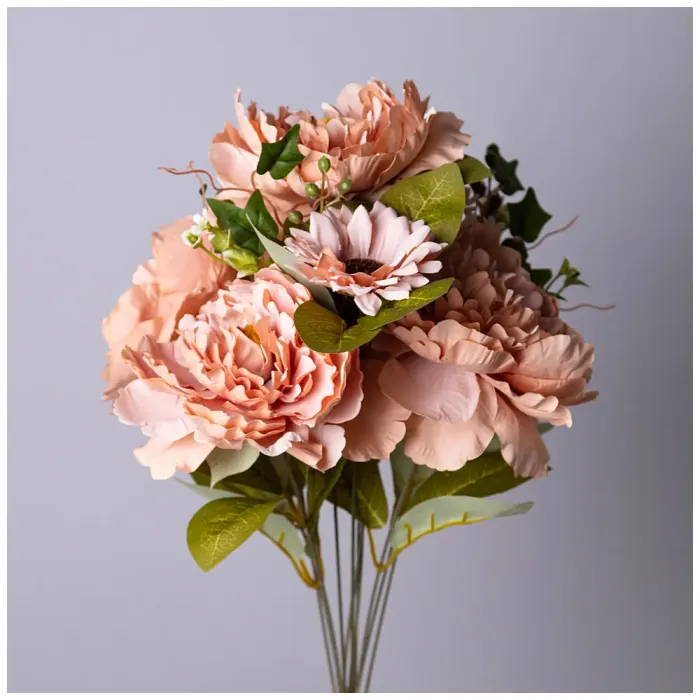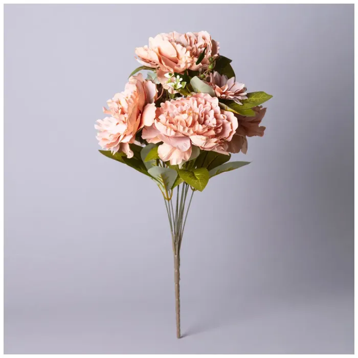 Цветочная композиция из пионов Lefard длиной 53 см в терракотовом цвете предназначена для украшения интерьера. Искусственные цветы позволяют добавить яркости и уюта в любое помещение без необходимости ухода, характерного для живых растений.