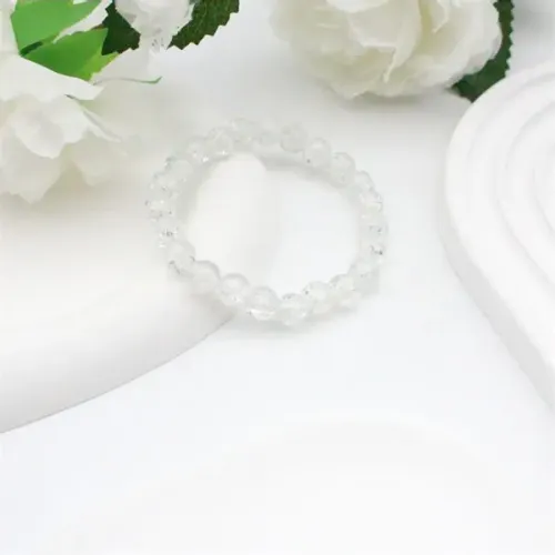Стрейч-браслет с бусинами из сахарного кварца диаметром 8 мм, цвет белый.