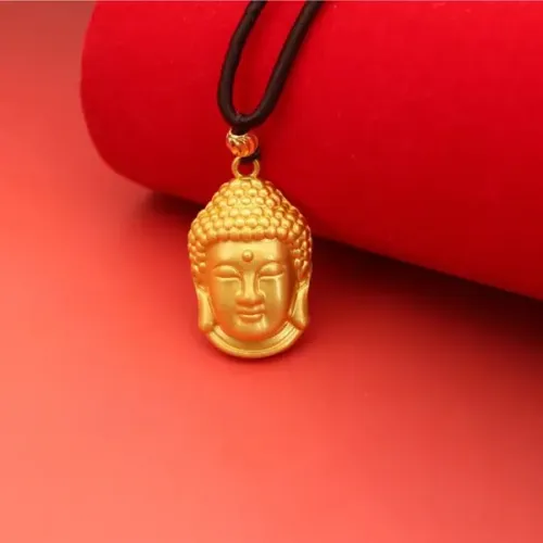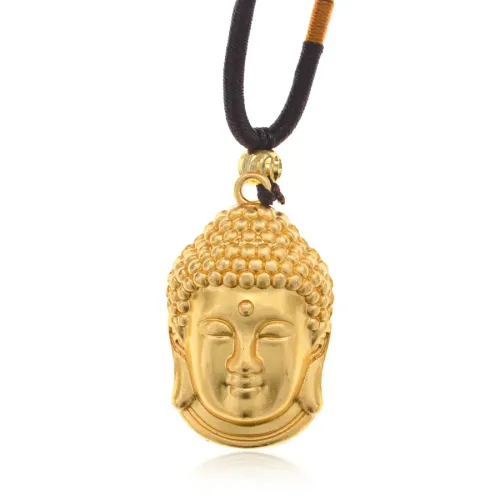 Металлический кулон с изображением Будды на регулируемом шнурке.