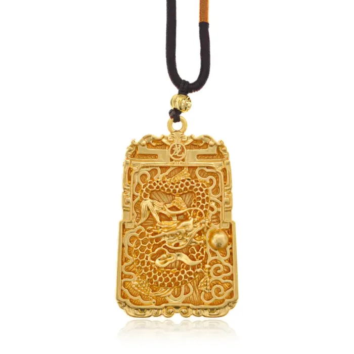 Кулон «Дракон» на шнурке. Металлическое украшение с покрытием под золото.