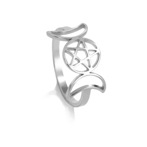 Кольцо из бижутерного сплава с дизайном в виде двух месяцев и пентаграммы.