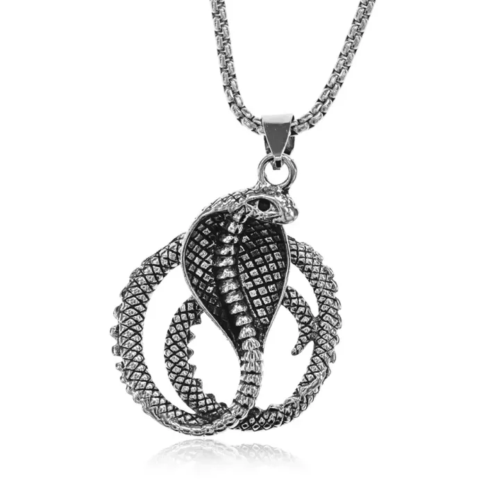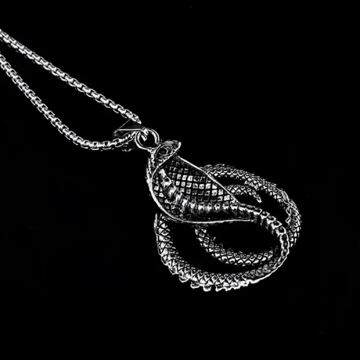 Металлический амулет в виде кобры на цепочке.