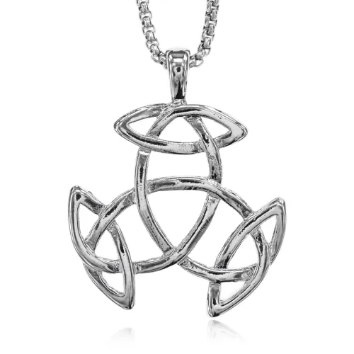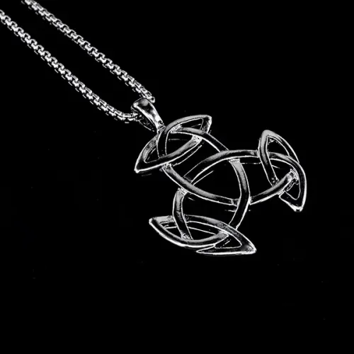 Металлический амулет-подвеска в виде символа трикветр на цепочке.