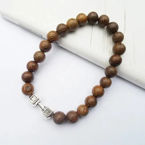 Деревянный браслет Гантель, 8мм BJBS-396
