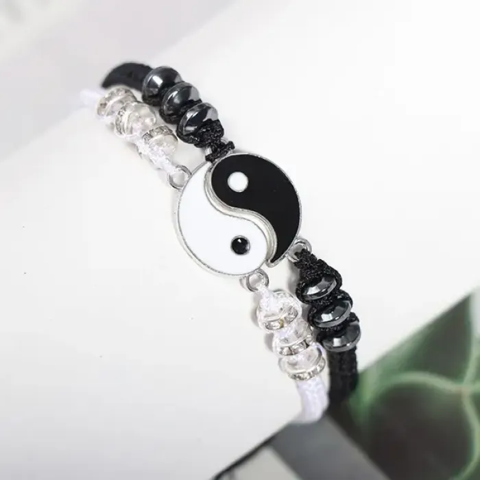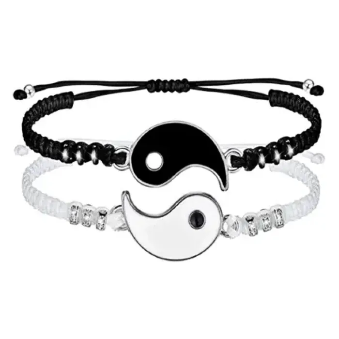 Парные плетёные браслеты Инь-Ян — сувенирный аксессуар из текстиля и металла с символикой единства.