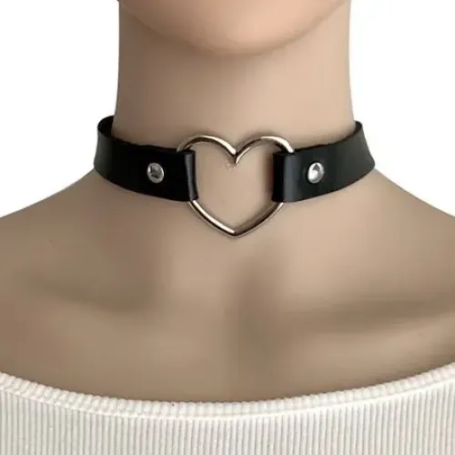 Чокер из искусственной кожи и металла с подвеской в виде сердца.