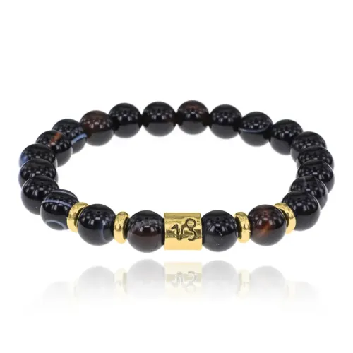 Браслет Знаки Зодиака - Козерог с натуральным Черным агатом 8 мм BSZE02-22