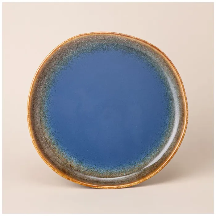 Тарелка изготовлена из высококачественной керамики, материала, известного своей прочностью и гигиеничностью. Поверхность изделия гладкая, что облегчает уход. Синий цвет придаёт тарелке элегантный вид с универсальным дизайном.