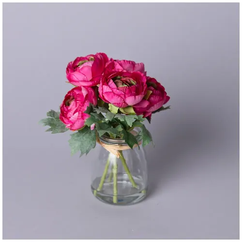 Букет выполнен из качественных материалов: ткань и полиэтилен обеспечивают реалистичный вид цветов, а стеклянная ваза с искусственной водой добавляет композиции завершенности. Искусственные цветы не требуют полива и могут находиться даже в темных местах без риска увядания. Они не создают мусор и безопасны для аллергиков.
