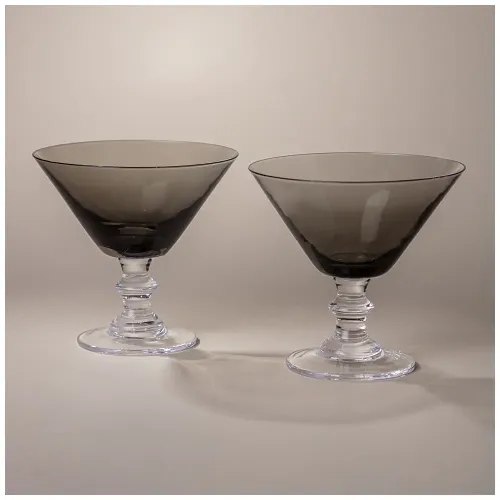 Бокалы можно использовать для сервировки различных коктейлей. Дымчатый цвет позволяет сочетать их с посудой нейтральных или контрастных оттенков. Дизайн подходит для современных и минималистичных интерьеров.